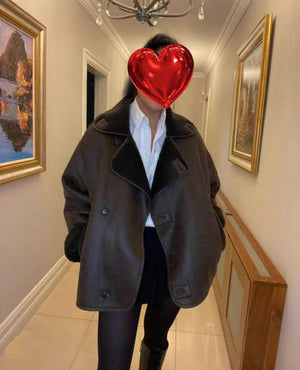 The oversized fit of this jacket is perfect for layering over any outfit, providing a relaxed yet fashionable look. It's the ideal piece for those who want to combine comfort with style, keeping you cozy without compromising on elegance.